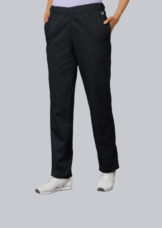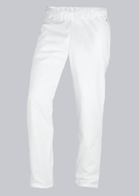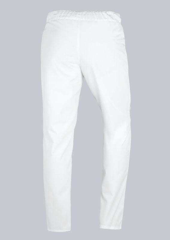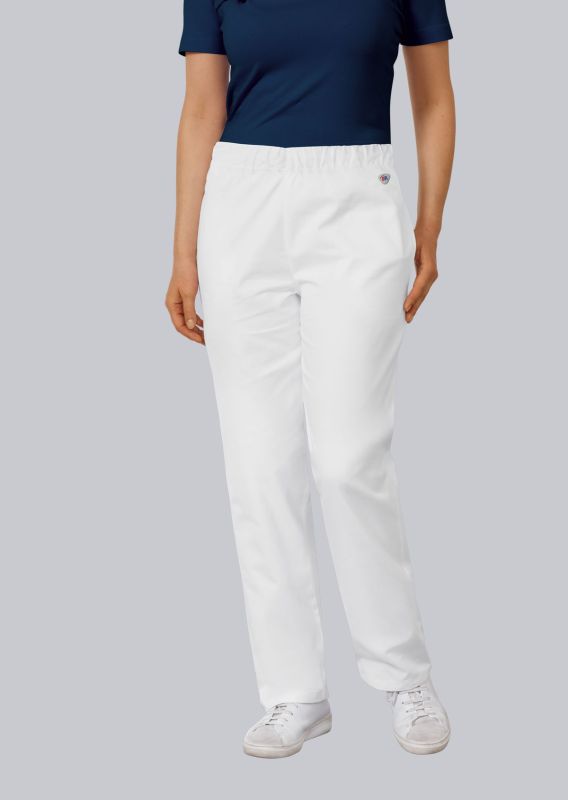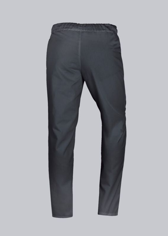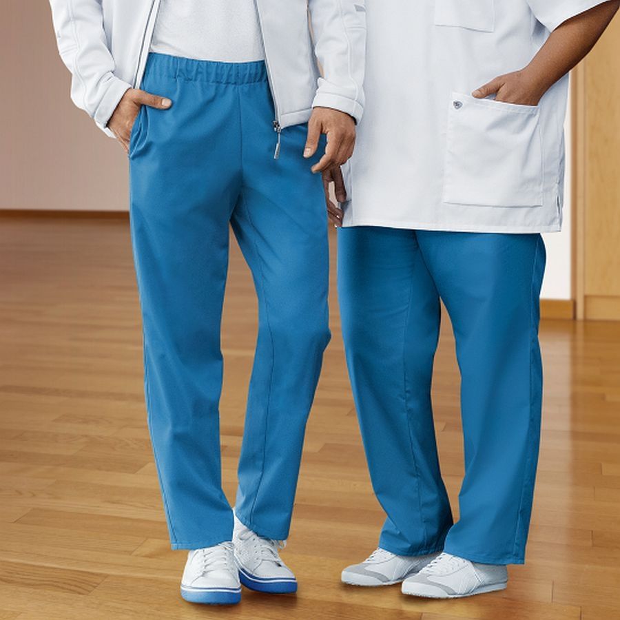 Der gerade, komfortable Schnitt sorgt für ausreichend Bewegungsfreiheit. Der elastische Rundumgummizug im Bund ermöglicht ein schnelles An- und Ausziehen und einen sicheren Sitz – praktisch im Arbeitsalltag.