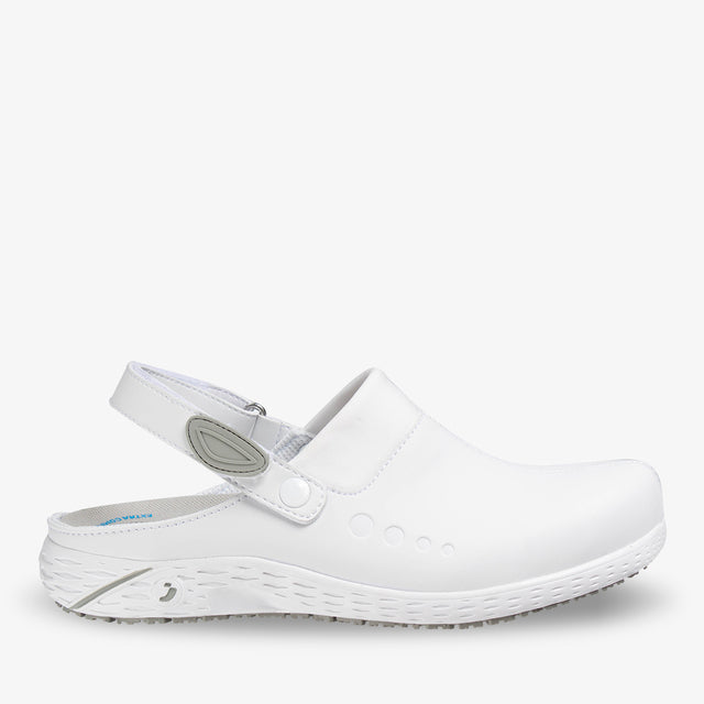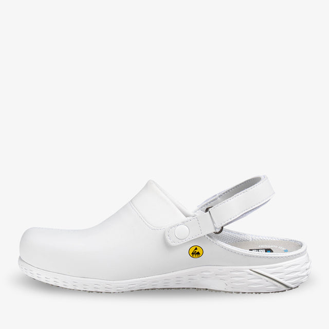 Der Clog besteht aus pflegeleichten Materialien, die sich einfach reinigen lassen. Dadurch ist er besonders gut für hygienisch sensible Arbeitsbereiche geeignet.
