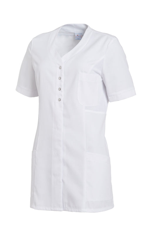 Der komfortable, leicht taillierte Schnitt bietet ausreichend Bewegungsfreiheit. Die Seitenpassen unterstützen die Flexibilität zusätzlich und sorgen für ein angenehmes Tragegefühl. Der Kasack lässt sich leicht an- und ausziehen und überzeugt durch eine klare, professionelle Ausstrahlung.