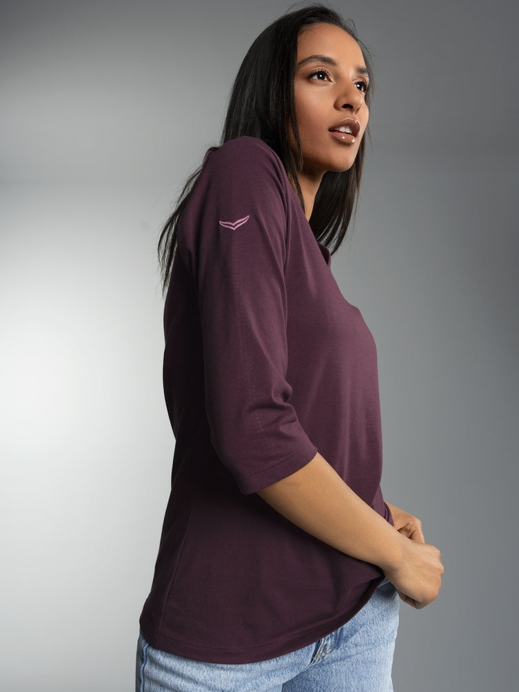 Mit seinem modischen 3/4-Arm und dem klassischen Rundhalsausschnitt bietet das Shirt eine bequeme, leicht taillierte Passform. Es lässt sich vielseitig kombinieren – ob unter Kasacks, Blazern oder als dezentes Basic-Shirt.